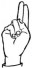 На ћирилици написано РУМЕНА МИЛОШЕВАЦ састоји се из 15 слова [?]. Исписано ћириличном једноручном азбуком за глувонеме: